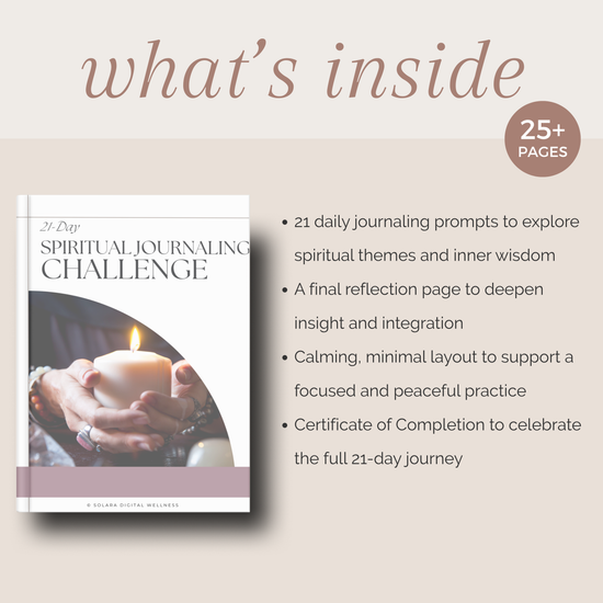 The 21-Day Spiritual Journaling Challenge is a peaceful and reflective journey designed to help you reconnect with your inner truth, deepen self-trust, and explore what spirituality means to you — in a way that’s grounded, personal, and pressure-free.