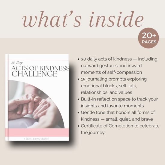The Acts of Kindness Challenge is a 30-day invitation to lead with compassion — toward yourself and others — through simple, meaningful action. Rooted in connection and self-awareness, this gentle journey helps you strengthen empathy, foster gratitude, and create small ripple effects of care in your everyday life.