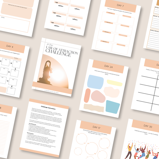 The Law of Attraction Challenge is a 30-day mindset and manifestation journey designed to help you align with your vision — and become the energetic match for what you desire. Through daily prompts, reflections, and intentional exercises, this experience bridges mindset work with grounded, real-world action.