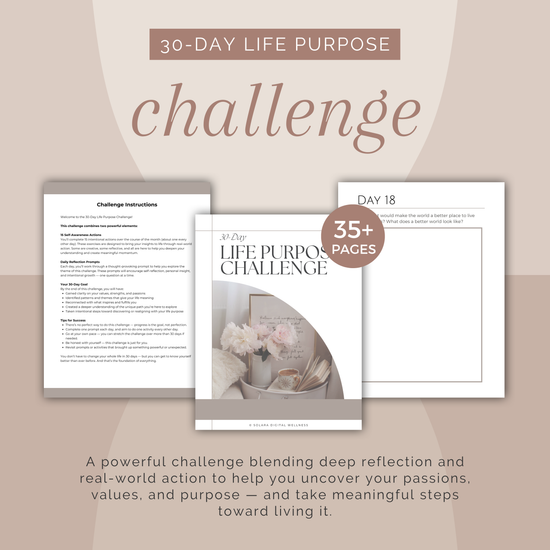 The Life Purpose Challenge is a transformational 30-day journey designed to help you reconnect with your values, passions, and unique path — one day at a time. Through a powerful mix of deep journaling prompts and creative, purpose-driven activities, this challenge guides you to uncover what truly drives you and how to live it with more clarity and intention.