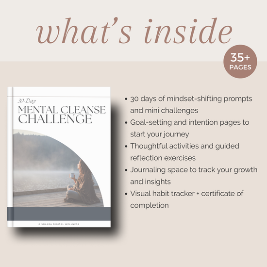 The 30-Day Mental Cleanse Challenge is a powerful, practice-based journey designed to help you release mental clutter, reduce overwhelm, and create more space for clarity, calm, and focus. With thoughtful prompts and purposeful mini actions, this experience supports emotional regulation, mindset shifts, and intentional living.
