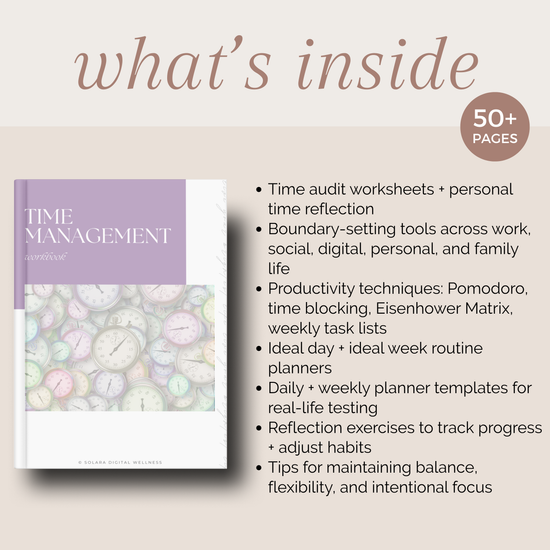 Whether you're using it personally to feel more in control of your days, or offering it to clients as part of a coaching package, course, or group experience, the Time Management Workbook provides a flexible framework to explore habits, boundaries, and time use in a completely new way.